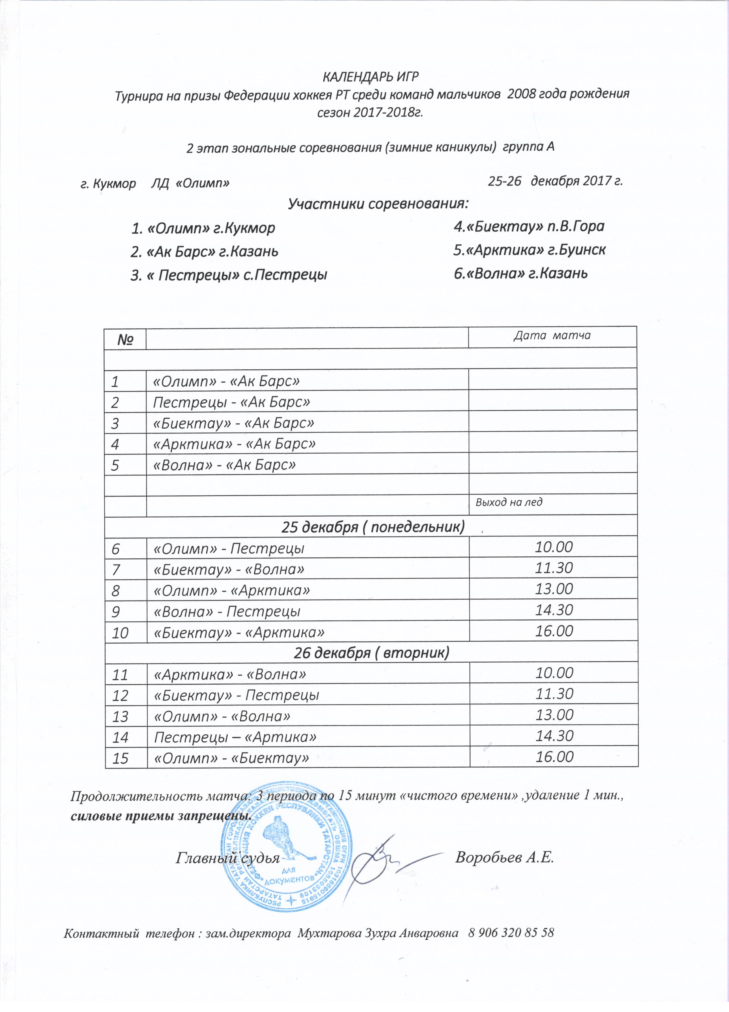 Календарь игр турнира на призы Федерации хоккея РТ