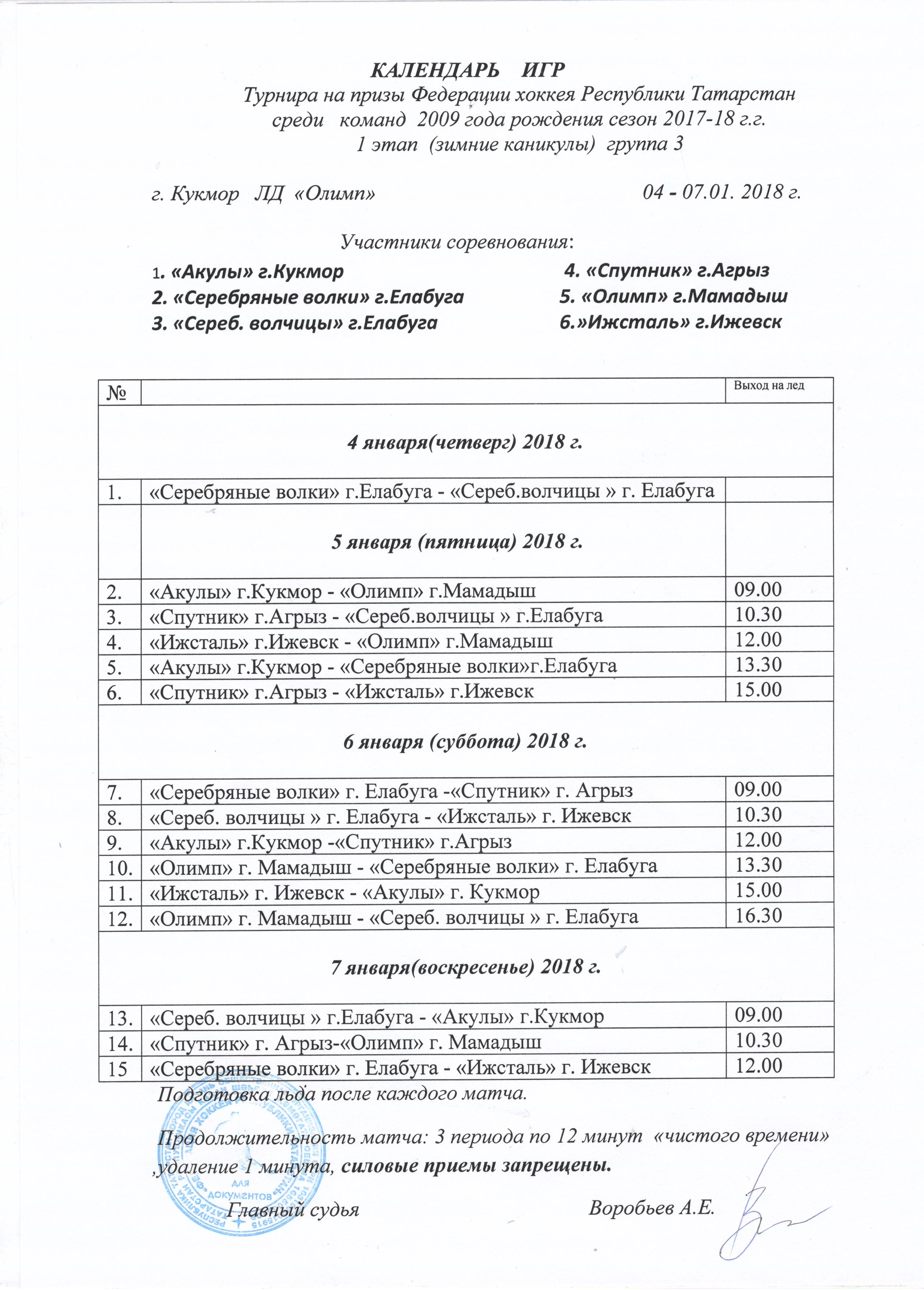 5-7 января 2018 года состоится Турнир по хоккею на призы ФХ РТ среди команд 2009г.р. Ждем всех желающих.Вход свободный.