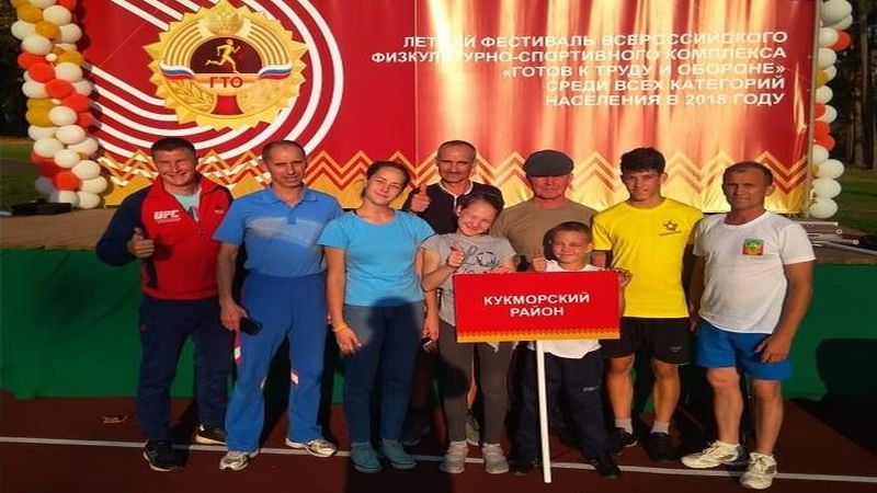 В Нижнекамске проходил летний республиканский фестиваль "Готов к труду и обороне" среди всех категорий населения. В соревнованиях приняли участие команды из более чем тридцати районов Татарстана в возрасте от 9 лет до 70 и старше. За два дня спортсменов выполнили нормативы по бегу на короткие и длинные дистанции, стрельбе из пневматической винтовки, наклону, прыжку в длину с места, отжиманию и подтягиванию. В фестивале приняли участие и кукморяне и показали хорошие результаты. Так в состав команды вошли Рузаль Сабирзянов, Анастасия Исаева, Мухамет Гайнутдинов из Кукморской средней школы №4, Азалия Шаймарданова, Альбина Санникова из многопрофильного лицея, Дилюс Каримуллин из Лельвижской школы, Фатхрахман Башаров из Яныльской школы, Миннерахман Ваккасов из Центра дополнительного образования, Валерий Павлов из села Нырья.