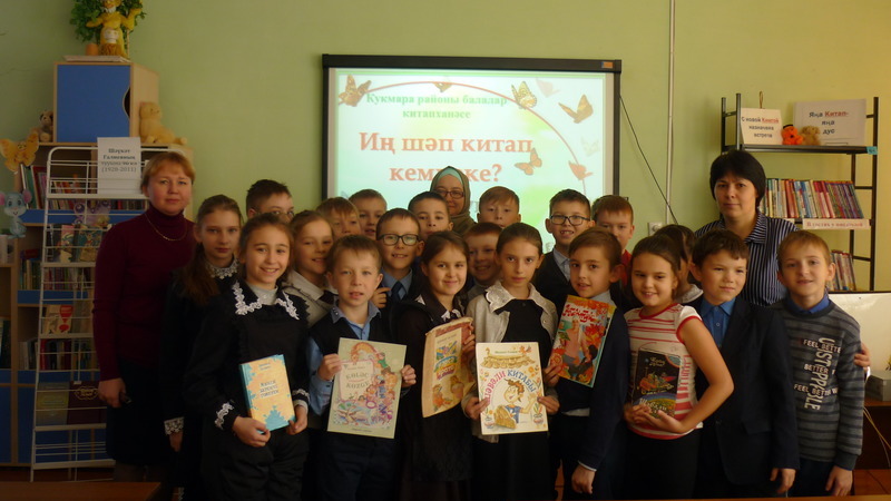 30 ноября библиотекарь детской библиотеки Багавиева Алсу для учащихся 4а класса МБОУ «Гимназия №1 им.Ч.Т.Айтматова пгт Кукмор» провела урок-презентацию «Иң шәп китап кемнеке? Шәүкәт Галиевныкы”, посвященный 90 летию со дня рождения татарского поэта. Она познакомила ребят с творчеством и веселыми стихотворениями поэта, которые проникнуты добротой, лукавым озорством и остроумием. Рассказ сопровождался электронной презентацией. Дети с удовольствием читали его поучительные и интересные стихотворения, скороговорки, показали пантомимо, отгадывали загадки, участвовали в игре со словами, прочитали по ролям стихотворение “Эни белән кыз”, инсценировали стихотворение “Аю белән Чебен”, “Шәвәли хәйләсе”. Мероприятие завершилось обзором книг.