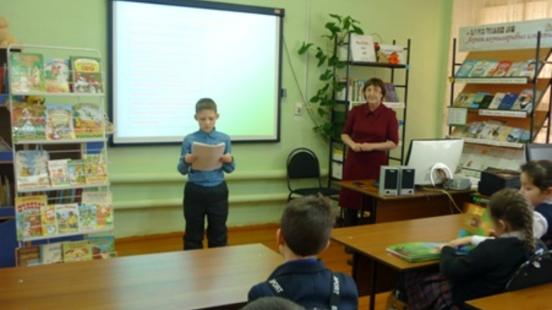 5 февраля библиотекарь детской библиотеки Хафизова Гульфия для учащихся 2в класса МБОУ «Многопрофильный лицей им.А.М.Булатова пгт Кукмор» провела мероприятие во время, которого юные читатели попали в Страну сказочных героев и стали участниками литературной викторины «Звери и птицы – герои сказок». Сказки – это волшебный мир, где животные умеют разговаривать, учат доброте, честности, смелости, радуют и помогают в жизни! Чтобы сказки раскрыли свои секреты, ребятам нужно было пройти по различным турам викторины. Они дружно отвечали на вопросы и показали хорошие знания. В конце мероприятия ребята посмотрели мультфильм «Петушок золотой гребешок». Всего присутствовало 32 человека.