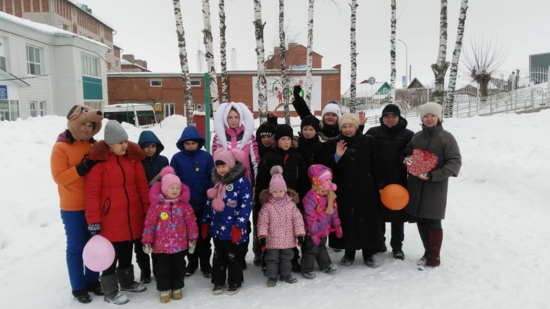 На празднике также присутствовали именинники, у которых день рождения совпал с этим удивительным праздником. Герои мультфильма и дети дружно спели для них песню «Каравай», затем вручили памятные подарки.