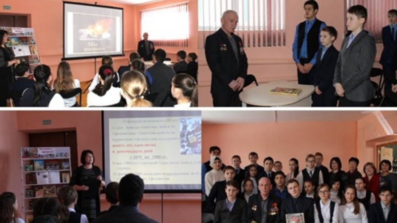 «Афганистан к нам тянется сквозь годы» с участием воина-интернационалиста Миннеханова Фазыла Рашиловича, который рассказал собравшимся о нелёгкой службе в далёкой стране, о молодых соотечественниках, не вернувшихся из боя.
