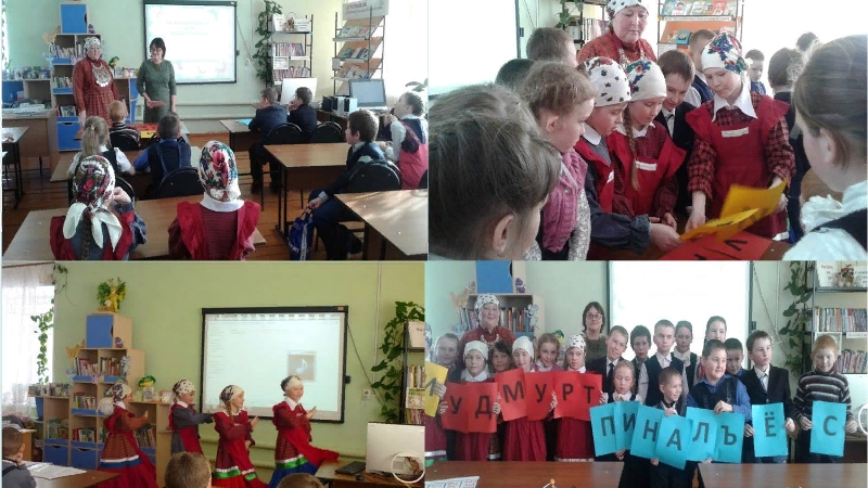 20 февраля, в преддверии Международного Дня родного языка, в детской библиотеке прошло очередное занятие клуба «Радуга». Сотрудник детской библиотеки Гайнутдинова Нурия и библиотекарь Нижнекуморской сельской библиотеки Туктаева Светлана провели литературный час «Родной земли многоголосья» на русском и удмуртском языках. Они рассказали ребятам о корнях этого праздника, для чего он проводится, интересные факты из ее истории. Каждый народ имеет свои традиции, культуру и, конечно же, литературу. Ребята познакомились с творчеством удмуртских писателей и поэтов. Беседа сопровождалась презентацией. Затем дети активно участвовали в играх и конкурсах, дружно отгадывали загадки, читали стихи, пословицы и поговорки, танцевали, пели песни о родном языке и родном крае. Мероприятие завершилось обзором книг.