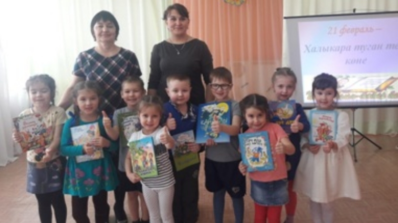 21 февраля, отмечая Международный день родного языка, библиотекарь детской библиотеки Закирова Фирдания для воспитанников детского сада «Рябинушка» провела литературный час «Туган телем - алтын хәзинә». Она рассказала об истории возникновения этого праздника, о необходимости сохранения и бережного отношения к родному языку, к народному творчеству, традициям и обычаям, прочитала произведения детского фольклора. Дети с удовольствием отгадывали загадки, подсказывали продолжение пословиц, участвовали в играх, смотрели мультфильмы по татарским народным сказкам.