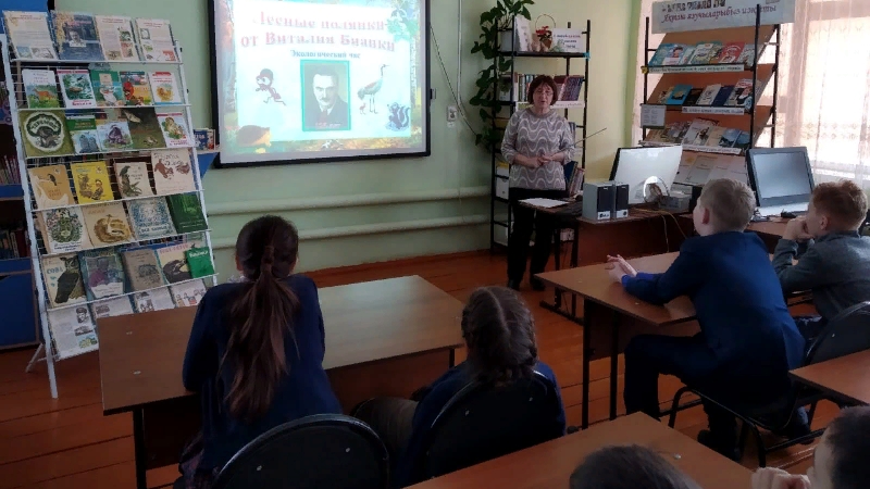 27 февраля прошло очередное занятие клуба «Росинка» - экологический час «Лесные полянки от Виталия Бианки», посвященный юбилею русского писателя В.Бианки. Руководитель клуба Хафизова Гульфия рассказала об удивительной биографии и творческом пути писателя, полной любви к природе и окружающему миру. Затем ребята приняли активное участие в литературной викторине «Знатоки произведений Бианки». С удовольствием они отгадывали загадки, кроссворды, читали отрывки из сказок автора, отвечали на занимательные вопросы теста. Мероприятие прошло увлекательно и познавательно. В конце дети посмотрели мультфильм "Высокая горка" по сказке В. Бианки.