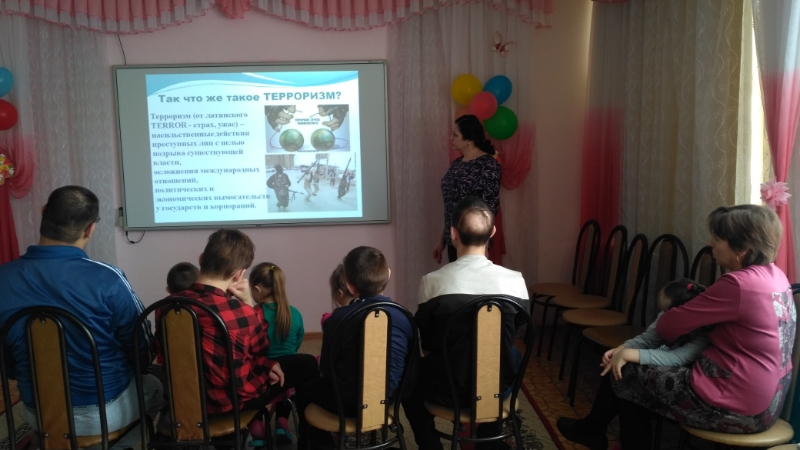 В процессе беседы ребята просмотрели небольшой видеофильм, где смогли найти ответы на вопросы: Как же не стать жертвой теракта? Что такое гражданская бдительность? Как вести себя при террористических актах? Потом ребятам была предложена игра «Если бы…», где они повторили правила поведения в случае угрозы террористического акта. В своем выступлении воспитатель особо подчеркнула: «Ребята, страшные события, которые происходят на территории нашей Родины, потрясают не только нас, но весь мир. Помните – ваша цель остаться в живых! Не трогайте, не вскрывайте, не передвигайте обнаруженные подозрительные предметы, так как это может привести к взрыву. Сообщайте взрослым или в полицию. Если же вы всё-таки оказались заложником, не допускайте действий, которые могут спровоцировать террористов к применению насилия или оружия».