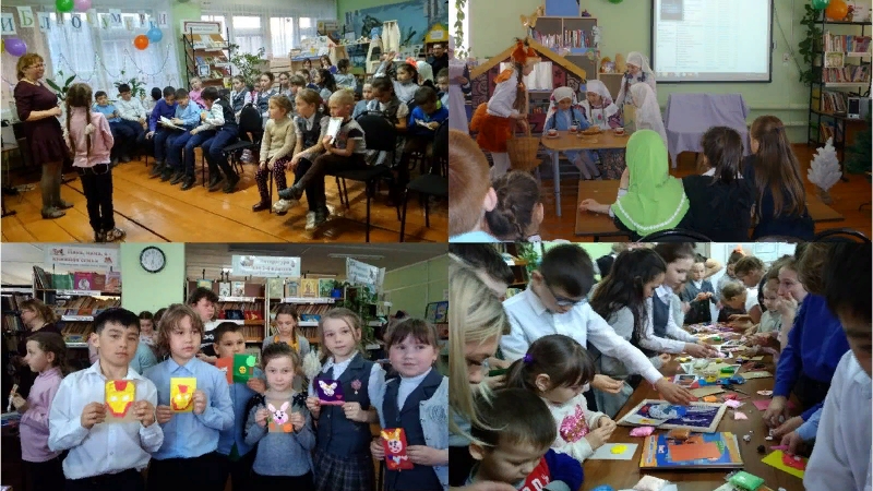 19 апреля детская библиотека приняла участие во Всероссийской акции «Библиосумерки-2019». Официальная тема в этом году «Весь мир – театр», так как 2019 год в России объявлен Годом театра. Читатели библиотеки были заранее оповещены о времени праздника: яркое приглашение красовалось у входа в библиотеку. В этот день библиотека стала местом интересного досуга и общения, настоящим праздником для детей разного возраста и их родителей.