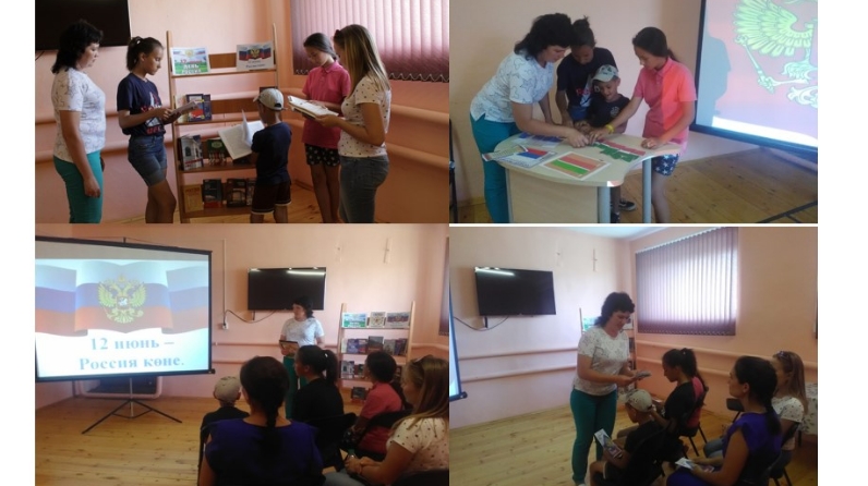10 июня сотрудница центральной библиотеки Саттарова Лилия Раисовна, для несовершеннолетних ребят КЦСОН “Тылсым” провела тематический час: «Россия, синең белен горурланабыз”. В ходе мероприятия Лилия Раисовна рассказали ребятам об истории возникновения праздника, о главных символах России: гербе, флаге, гимне; об истории их создания, о необходимости уважительного отношения к государственным символам России. К мероприятию была подготовлена книжная выставка: «12 июнь- Россия көне». В конце ребята приняли активное участие в конкурсах и викторинах.
