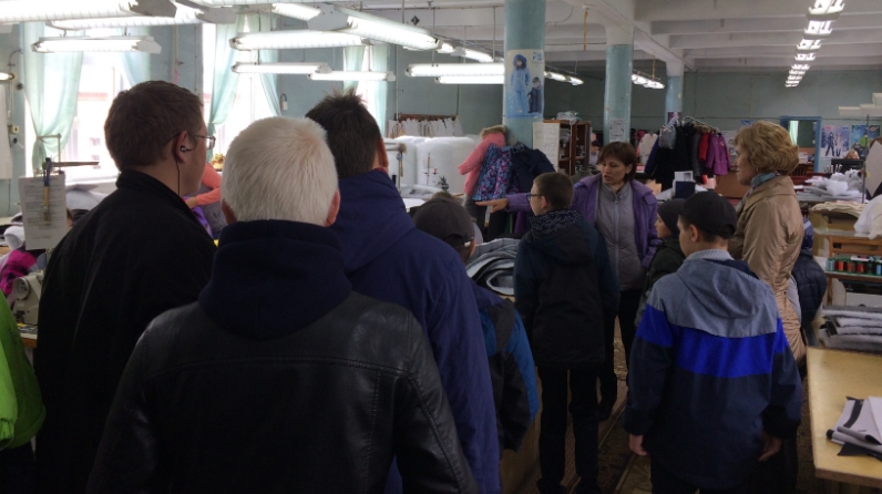 Экскурсия началась с цеха раскроя одежды и закончилась складом готовой продукции, поэтому дети смогли воочию увидеть весь путь создания красивых изделий: курток, комбинезонов, брюк и т.д.