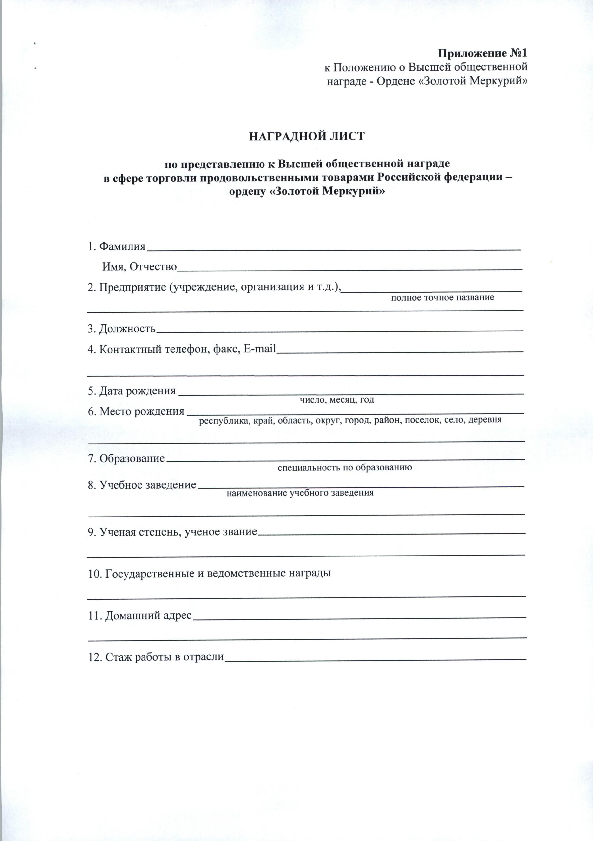 Заявку на участие в работе Всероссийской Конференции по прилагаемой форме и предложения по награждению Орденом «Золотой Меркурий» просим направит до 30 сентября 2012 года.