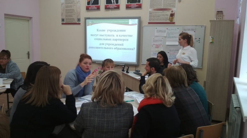 В рамках методической мастерской учреждений дополнительного образования для методистов проведены мастер-классы по темам: «Методическое сопровождение педагогов дополнительного образования детей со стажем работы менее 3 лет (школа наставничества)», «Социальное партнерство с организациями социального направления по выявлению и поддержке детей с особыми образовательными потребностями», деловая игра «Основные профессиональные компетенции педагога дополнительного образования в условиях реализации профессионального стандарта».
