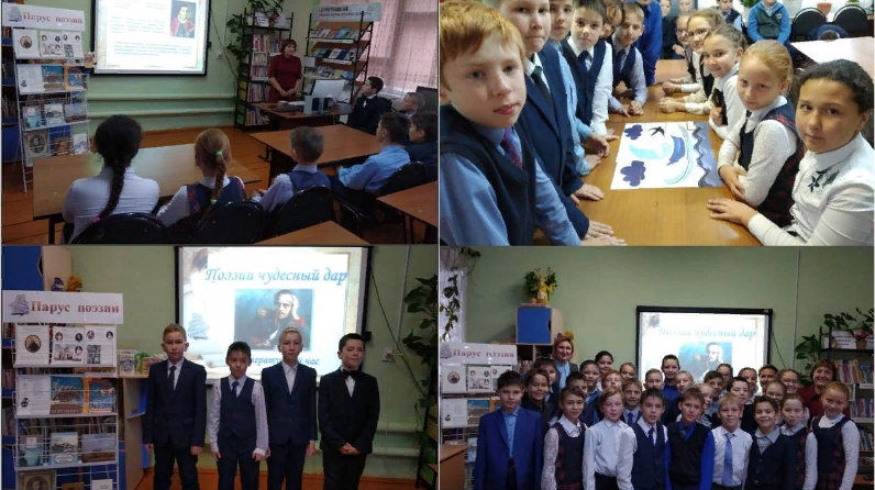 Большой интерес у ребят вызвала книжная выставка «Парус поэзии», где была представлена литература о жизни и творчестве поэта, его произведения. Охотно брали книги с выставки, рассматривали семейные портреты поэта и его живописные рисунки к стихам.