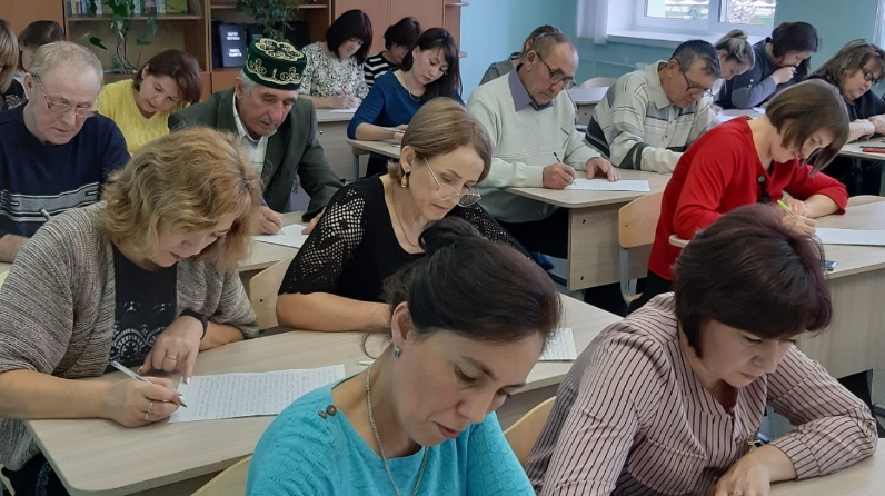 Присоединились к Всемирной акции и в Кукморе. Попробовать свои силы в диктанте бесплатно смог каждый желающий. В этом году для написания был выбран отрывок из произведения Роберта Миннулина "Мин кулыма китап алам".
