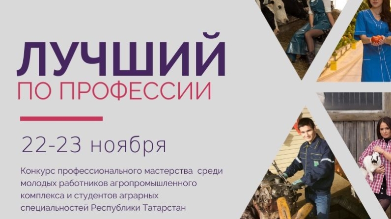 С 22 по 23 ноября в рамках реализации подпрограммы «Сельская молодежь Республики Татарстан на 2014-2020 годы» пройдет конкурс профессионального мастерства «Лучший по профессии» среди молодых работников агропромышленного комплекса Республики Татарстан. Организаторами конкурса выступают региональная общественная организация «Аграрное молодежное объединение Республики Татарстан», Министерство сельского хозяйства и продовольствия Республики Татарстан и Министерство по делам молодёжи Республики Татарстан.