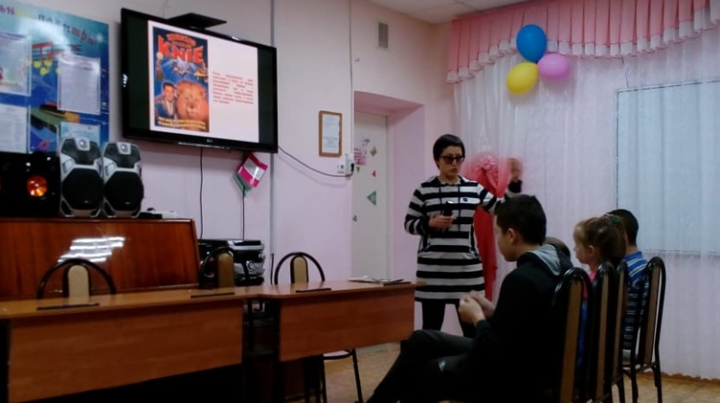 14 ноября библиотекарь центральной библиотеки Загидуллина Гульнара Фаритовна для ребят, проходящих реабилитацию в центре «Милосердие», провела тематический час с компьютерной презентацией «Цирк зажигает огни», посвященный 100-летию Росгосцирка. Ребята познакомились с историей возникновения цирка и интересными фактами из жизни цирковых артистов.