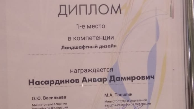 С 18-22 ноября в г. Москве прошёл Национальный чемпионат по профессиональному мастерству среди лиц с ограниченными возможностями здоровья «Абилимпикс". «Абилимпикс» является одним из проектов АНО «Россия — страна возможностей», направленным на развитие системы социальных лифтов в стране. Цель проекта — обеспечение эффективной профессиональной ориентации и мотивации людей с инвалидностью к получению профессионального образования, содействие их трудоустройству и социокультурной инклюзии в обществе. АНО «Россия – страна возможностей» развивает одноименную платформу, объединяющую 20 проектов: конкурс управленцев «Лидеры России», студенческая олимпиада «Я – профессионал», международный конкурс «Мой первый бизнес» и другие.В чемпионате приняло участие конкурсанты разного возраста со всей России. Пройдя отборочные соревнования в Республике Татарстан на данном мероприятии принял участие студент ГАПОУ Казанского строительного колледжа Насардинов Анвар Дамирович, выпускник МБОУ "СОШ имени С. А. Ахтямова села Манзарас". В номинации Ландшафтный дизайн Насардинов Анвар занял 1 место!
