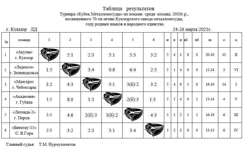 В рамках года родных языков и народного единства в ледовом дворце с 24 по 26 марта 2021 года прошел турнир по хоккею среди команд 2010г.р. на «Кубок Металлопосуды, посвященного 70-летию Кукморского завода Металлопосуды. Поиграть в хоккей приехали команды: «Легенда-2» г.Пермь, «Академия» г.Губаха, «Маэстро» г.Чебоксары, «Ледокол» г.Зеленодольск, «Акулы» г.Кукмор, «Биектау» г.В.Гора. По результатам игр третье место заняла команда «Легенда-2» г.Пермь, второе место - «Акулы» г.Кукмор, первое место- «Маэстро» г. Чебоксары . В номинации «Лучший защитник » был признан Инсаф Давлетшин.