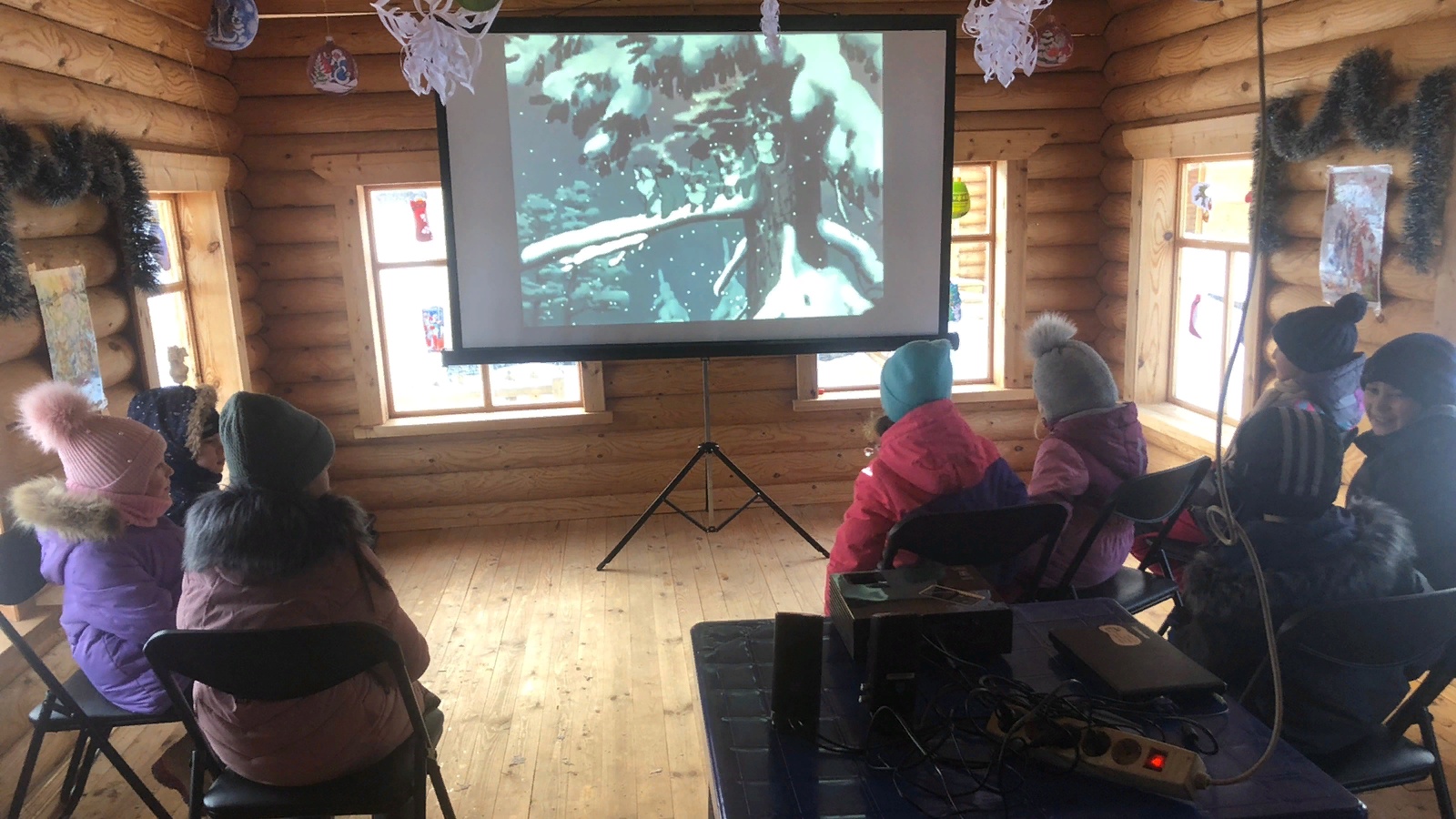В дни зимних каникул с 2 по 6 января сотрудники центральной и центральной детской библиотеки им.С.В.Михалкова в новогодней резиденции Дела Мороза организовали показ новогодних мультфильмов.