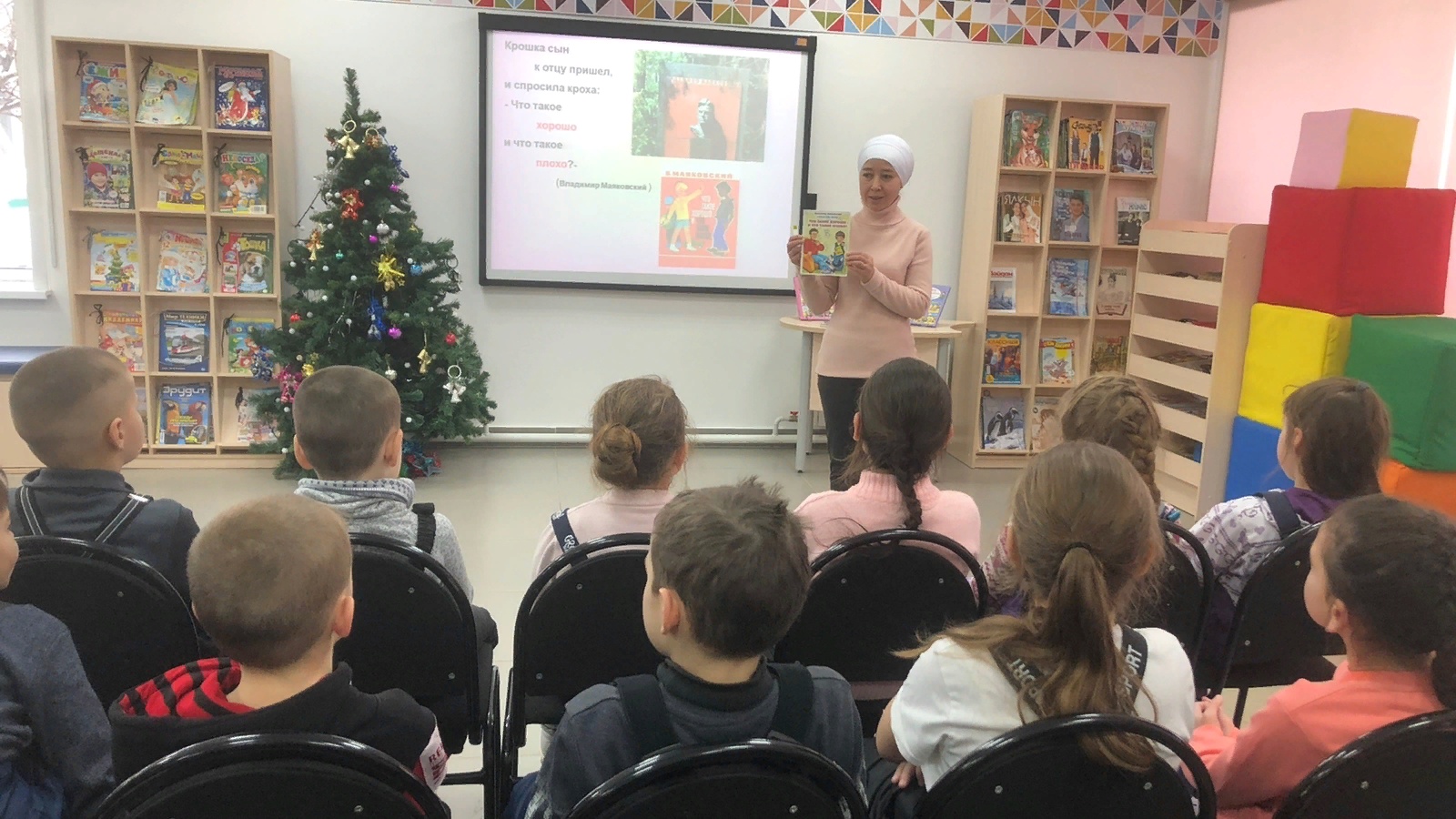 12 января библиотекарь центральной детской библиотеки им.С.В.Михалкова Гарифуллина Рамзия для учащихся 2 класса Олуязской средней школы провела час этики: «Будем делать хорошо и не будем плохо». Ребята узнали, что такое доброта и почему хорошо быть добрым, приняли участие в поучительных играх «Где спряталось добро», «Собери пословицы о добре», «Копилка добрых поступков». Детям были предложены различные ситуации, где нужно было найти правильный выход из положения. Мероприятие завершилось обзором книг и просмотром мультфильма «Цветик-семицветик».