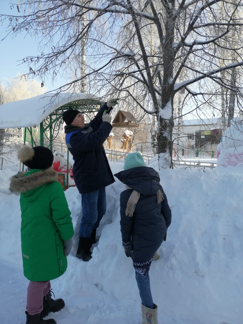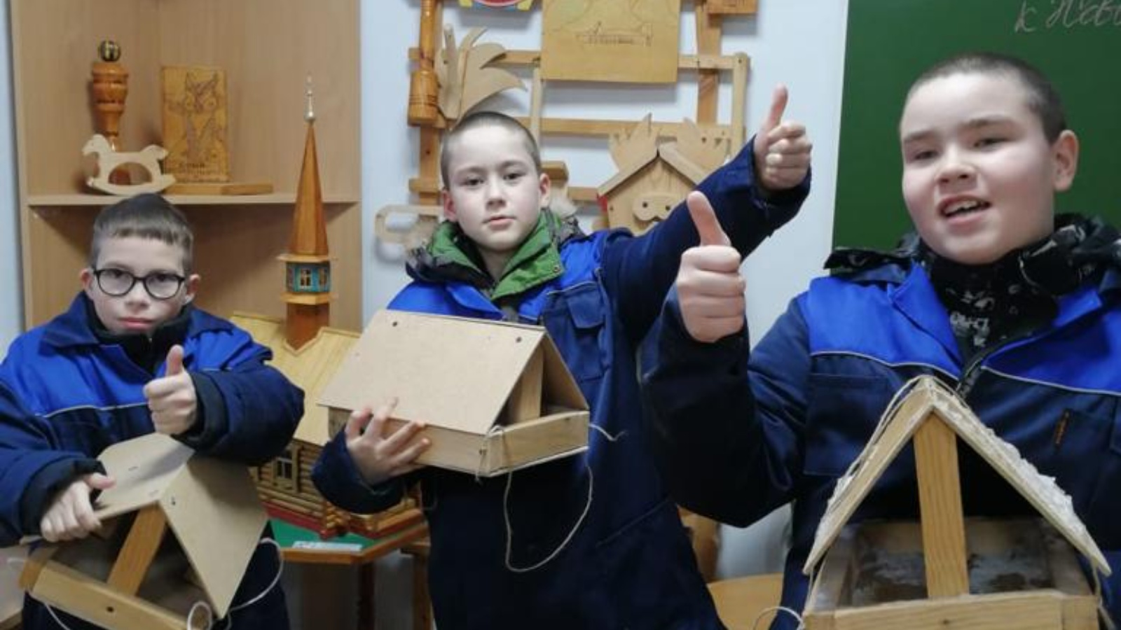 Мальчики смастерили кормушки для птиц в столярной мастерской под руководством инструктора по труду Шаймарданова Нурсила, почистили от снега старые кормушки.