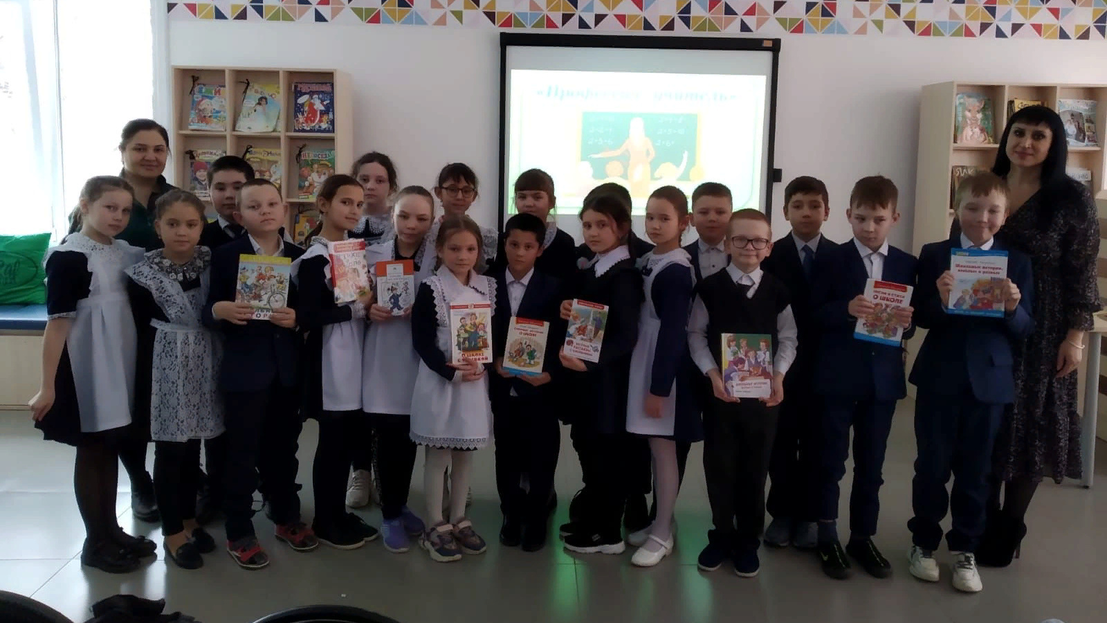 3 февраля библиотекарь центральной детской библиотеки имени С.В.Михалкова Ахметова Лейсан для учащихся 3а класса Гимназии №1 им.Ч.Т.Айтматова провела урок-презентацию «Профессия - учитель», посвященный Году педагога и наставника. Она рассказала ребятам о профессии учителя, о важной роли учителя в жизни каждого человека. Ребята приняли активное участие в разных конкурсах и играх, ответили на вопросы викторины, отгадали загадки о школе. Мероприятие завершилось обзором книг и просмотром мультфильмов.