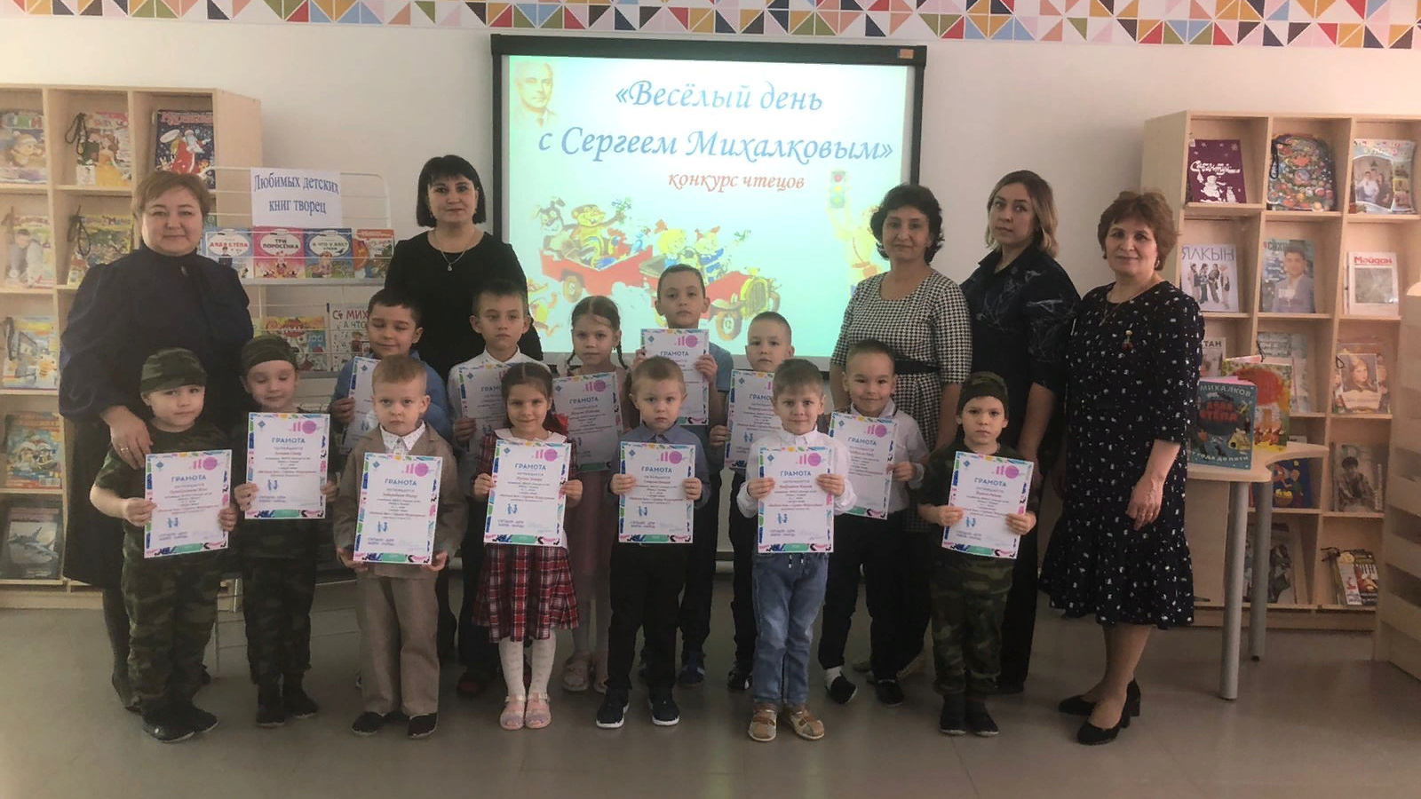 15 марта библиотекарь центральной детской библиотеки имени С.В.Михалкова Закирова Фирдания для дошкольников детского сада «Радуга» провела конкурс стихов «Веселый день с Сергеем Михалковым», посвященный 110 летию со дня рождению детского поэта, драматурга, баснописца Сергея Михалкова. Она познакомила детей с писателем, дети увидели портрет поэта, услышали интересные факты из его жизни и творчества, узнали о том, что Сергей Владимирович является автором гимна нашей страны. Затем ребята выразительно и эмоционально рассказали любимые стихи поэта о дружбе, о доброте, о Родине. По результатам конкурса жюри подвела итоги. Всем участникам конкурса были вручены грамоты.