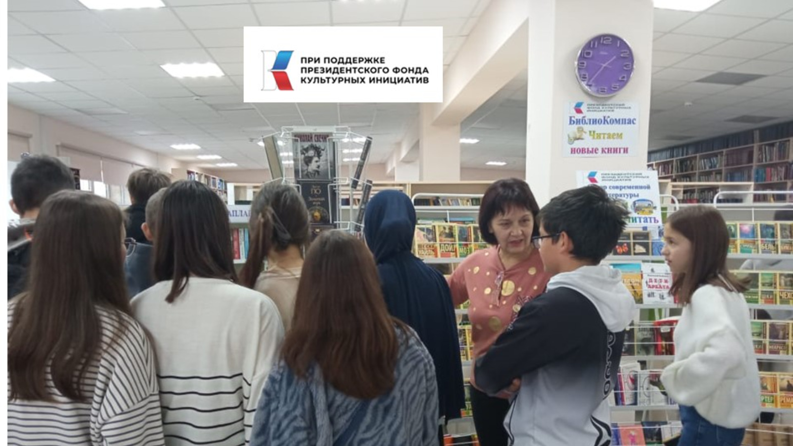 7 ноября в рамках проекта по популяризации чтения среди подростков: «Книги на все времена», в центральной библиотеке для учащихся 8 «а», 8 «б» и 8 «г» класса средней школы №3 провели Библиокомпас: «Читайте новые книги». Библиотекарь рассказала о роли книги в жизни человека, о способах приобретения новой литературы, провела обзор современной литературы. Всего присутствовало 78 человек.