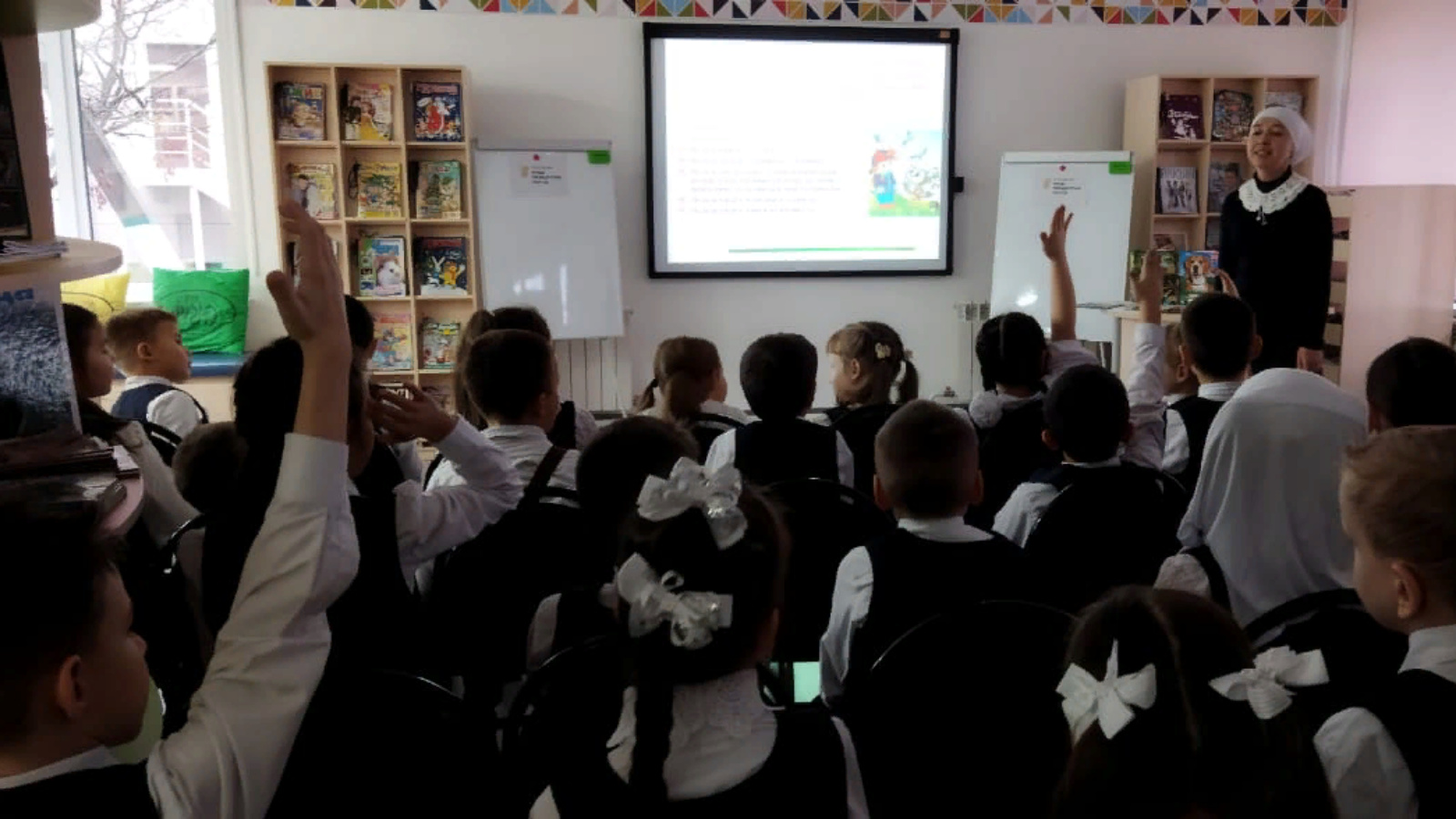 10 ноября библиотекарь центральной детской библиотеки имени С.В.Михалкова Гарифуллина Рамзия для учащихся 1а класса гимназии №1 им.Ч.Т.Айтматова провела экскурсию-знакомство «Умные книжки - умным ребятишкам». Ребята познакомились с различными зонами библиотеки, с книжными выставками, основными правилами пользования библиотекой, узнали, как надо вести себя в библиотеке, как нужно обращаться с книгами. Дети отгадывали загадки, участвовали в различных играх и конкурсах, ответили на вопросы викторины о литературных героях. Мероприятие завершилось на абонементе, ребята с интересом выбирали книги, взяли книги для чтения дома.