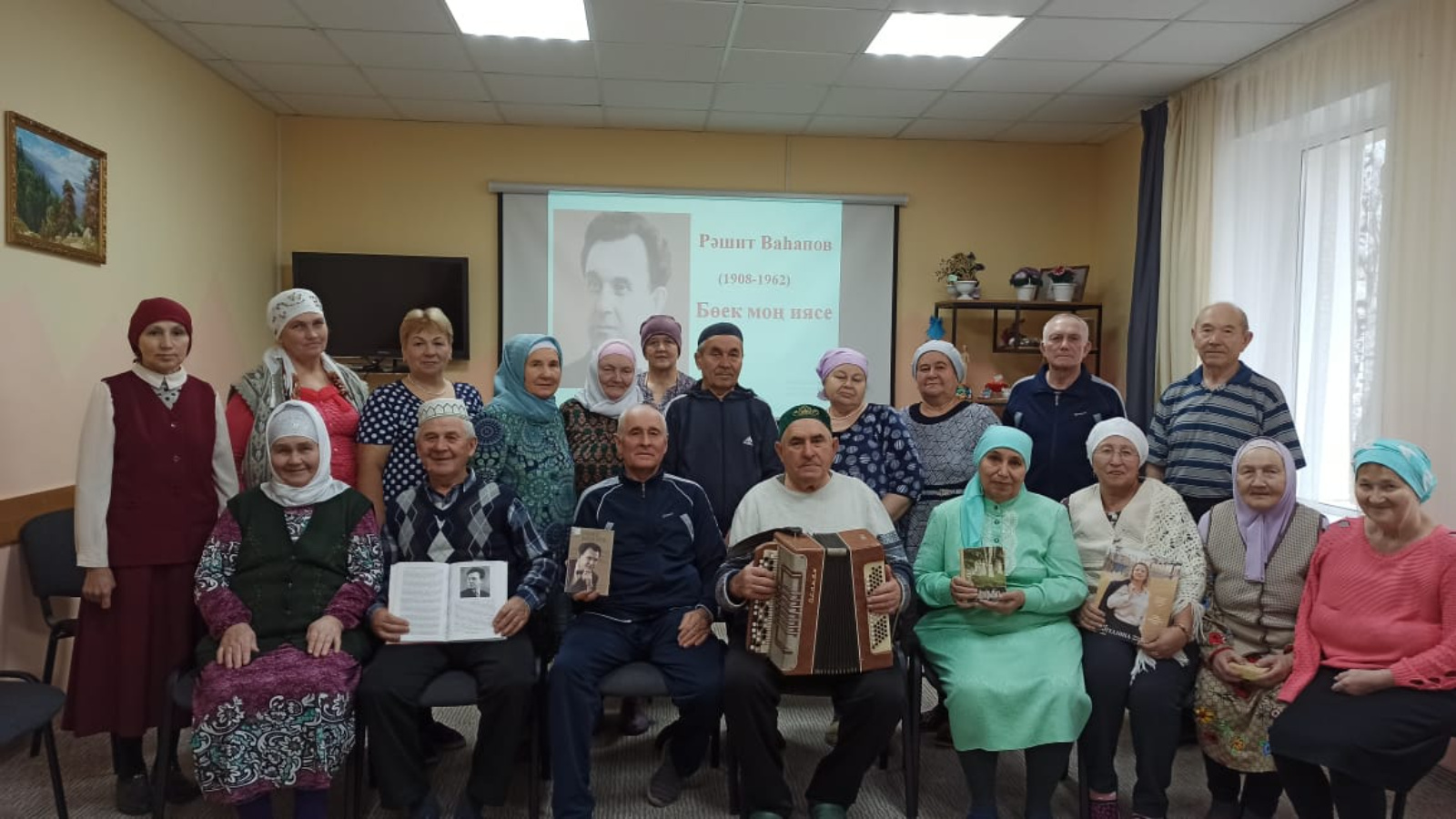 15 ноября, для отдыхающих пенсионеров АНО «ЦСП «НАЗ», библиотекарь читального зала Салимова Т.Х. провела тематический час: “Великий татарский певец - Рашит Вагапов”, (к 115-летию со дня рождения певца).