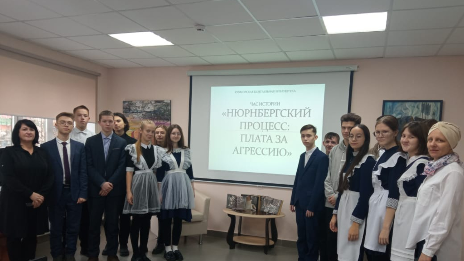 20 ноября в Центральной библиотеке прошел час истории: «Нюрнбергский процесс: плата за агрессию», который был приурочен 77-летию Нюрнбергского процесса. На мероприятии присутствовали ученики 10а класса гимназии №1 им. Ч.Т.Айтматова.