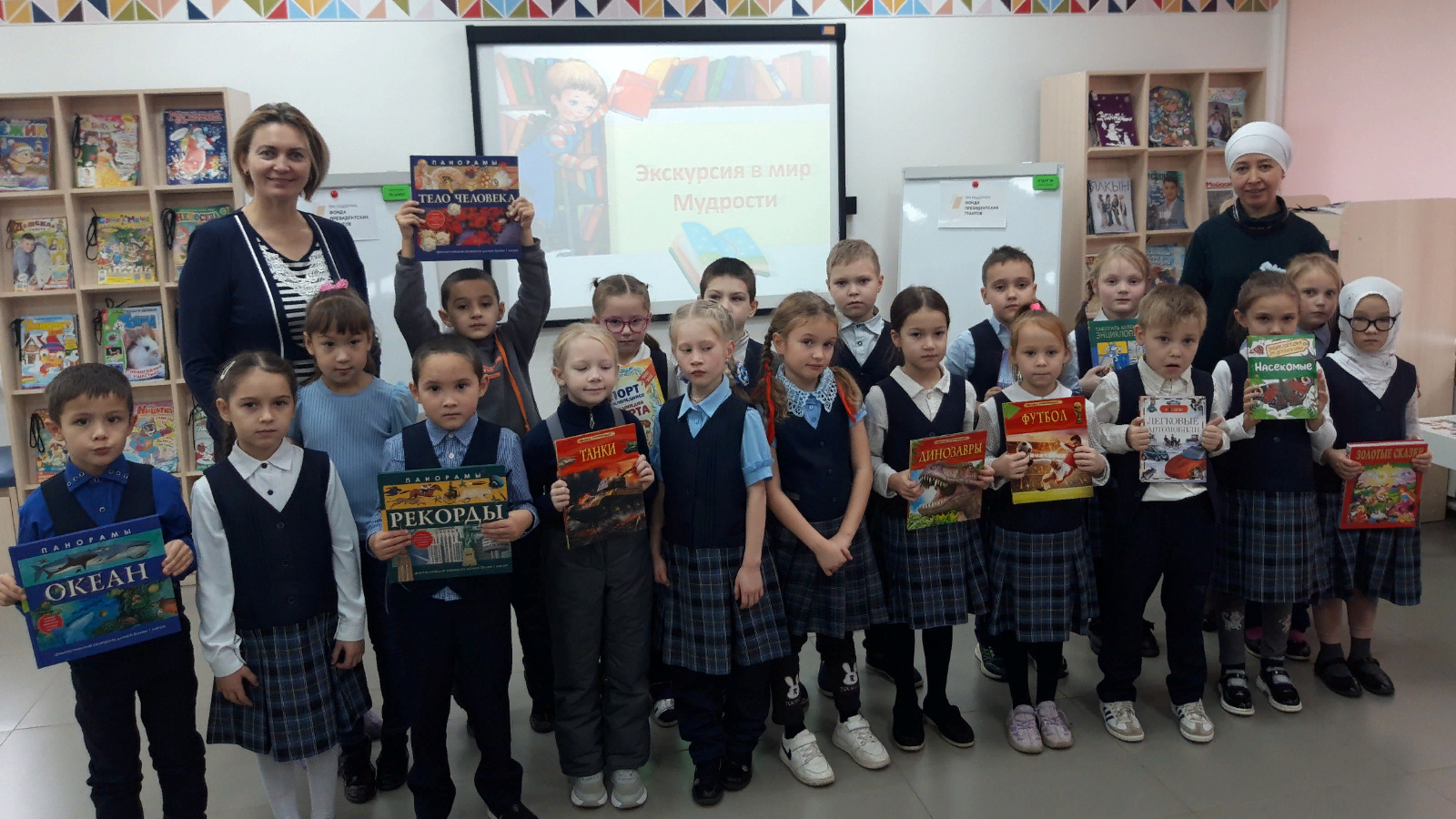 20 ноября библиотекарь центральной детской библиотеки имени С.В.Михалкова Гарифуллина Рамзия для учащихся 1б класса школы №4 провела библиотечный урок «Экскурсия в мир Мудрости». Ребята совершили увлекательное путешествие по книжной стране. Ребята познакомились с залами библиотеки, с новыми для них словами: абонемент, читальный зал, формуляр, стеллаж. Также они узнали, как найти нужную книгу, познакомились с правилами библиотеки, правилами обращения с книгой. Увлекательной для детей стала викторина по сказкам “В гостях у сказки”. С большим интересом рассматривали детские журналы и книги, отгадали загадки.