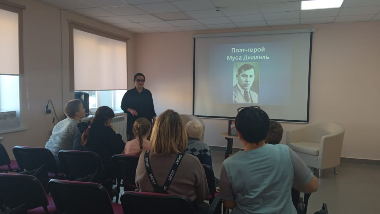 15 февраля библиотекарь центральной библиотеки Загидуллина Гульнара Фаритовна для ребят, проходящих реабилитацию в центре «Милосердие», провела урок мужества: «Муса Джалиль –поэт герой», посвященный 118-летию со дня рождения великого татарского поэта Мусы Джалиля. В ходе мероприятия слушатели узнали об интересных фактах из жизни поэта, его непростых детских и юношеских годах, литературной деятельности, о том, как он воевал, попал в плен, и о обессмертившей его имя автобиографичной книге стихов «Моабитская тетрадь». Мероприятие сопровождалось компьютерной презентацией.