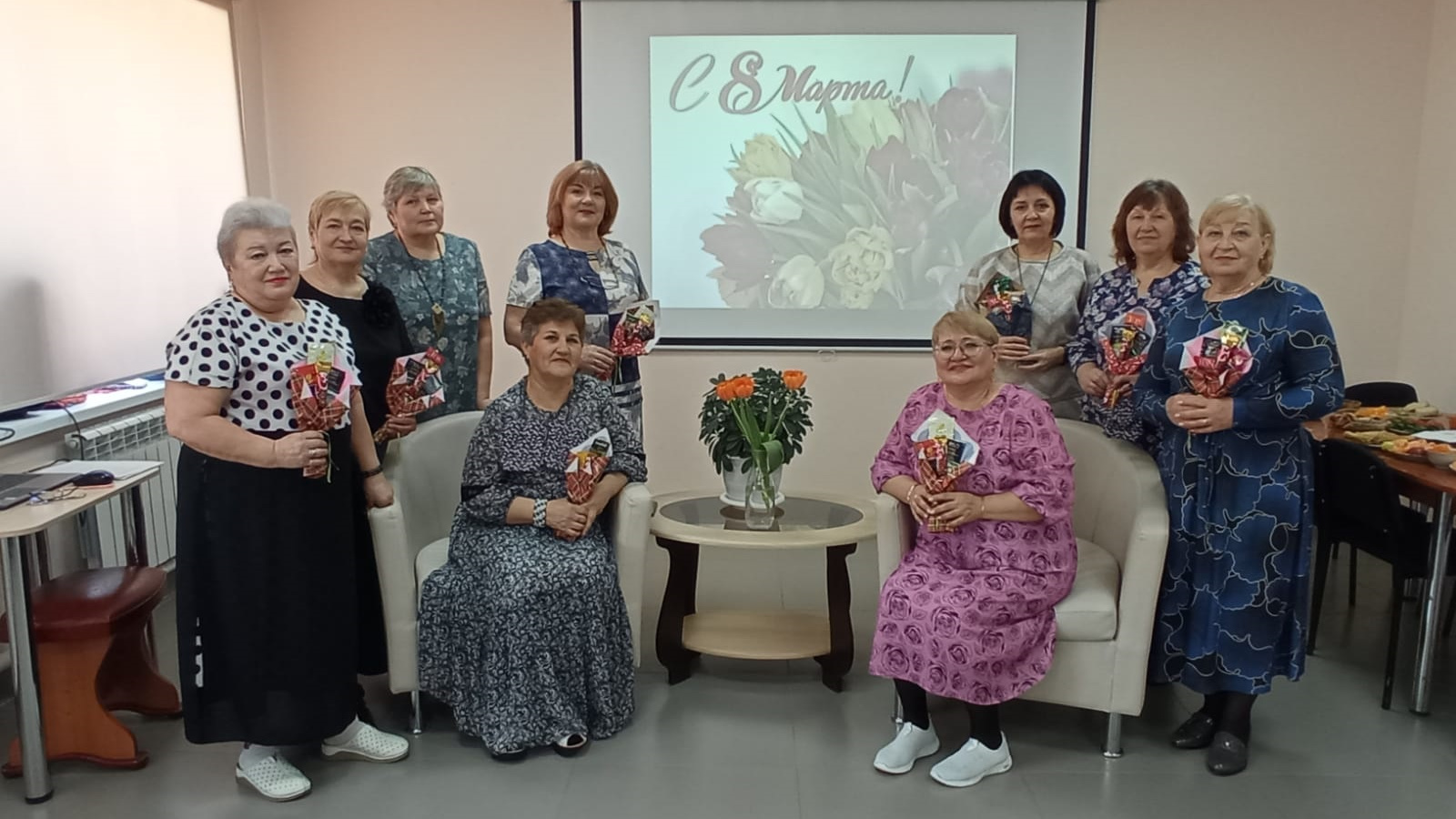 5 марта, в преддверии женского дня 8 марта, в центральной библиотеке собрались участницы женского клуба «Современница», на праздничную программу: «Весенние улыбки». В начале мероприятия провели беседу «Величайшие женщины России». А затем руководитель клуба Пахомова В.Г. предложила гостям веселую и насыщенную программу. Участницы клуба приняли участие в веселых конкурсах и викторинах, юмористических зарисовках. Гости и участники мероприятия остались довольны и покинули стены библиотеки, унося с собой тепло в душе и хорошее настроение
