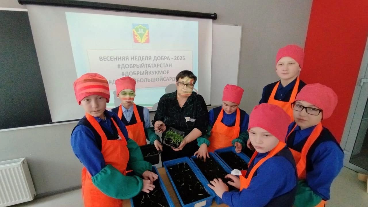 В рамках республиканской акции «Весенняя неделя добра» МБОУ"Гимназия с.Большой Сардек им.К.Ф.Шакирова" прошла посадка рассады под девизом «Доброе дело для природы».