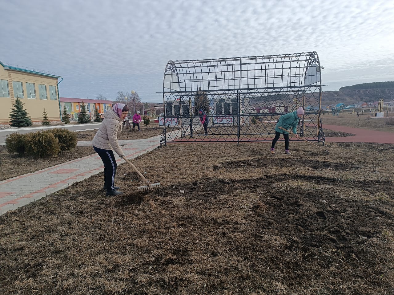 Уборка территории возле памятника села Вахитова. #Эковесна2025