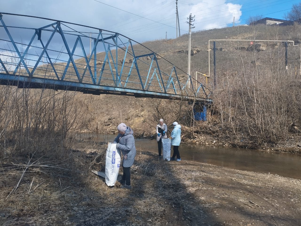 Сотрудники манзарасского сельского клуба очистили от мусора прилегающий к мосту участок.