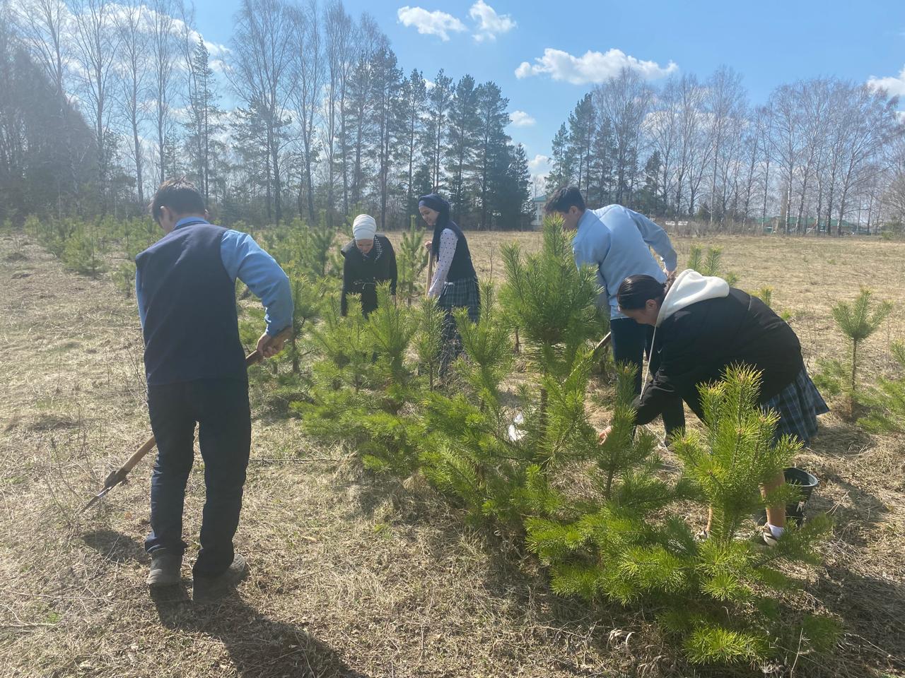 Учащиеся СОШ с. Березняк расчистили "Сад памяти" от прошлогодней листвы и травы, собрали мусор, потом высадили саженцы сосны.