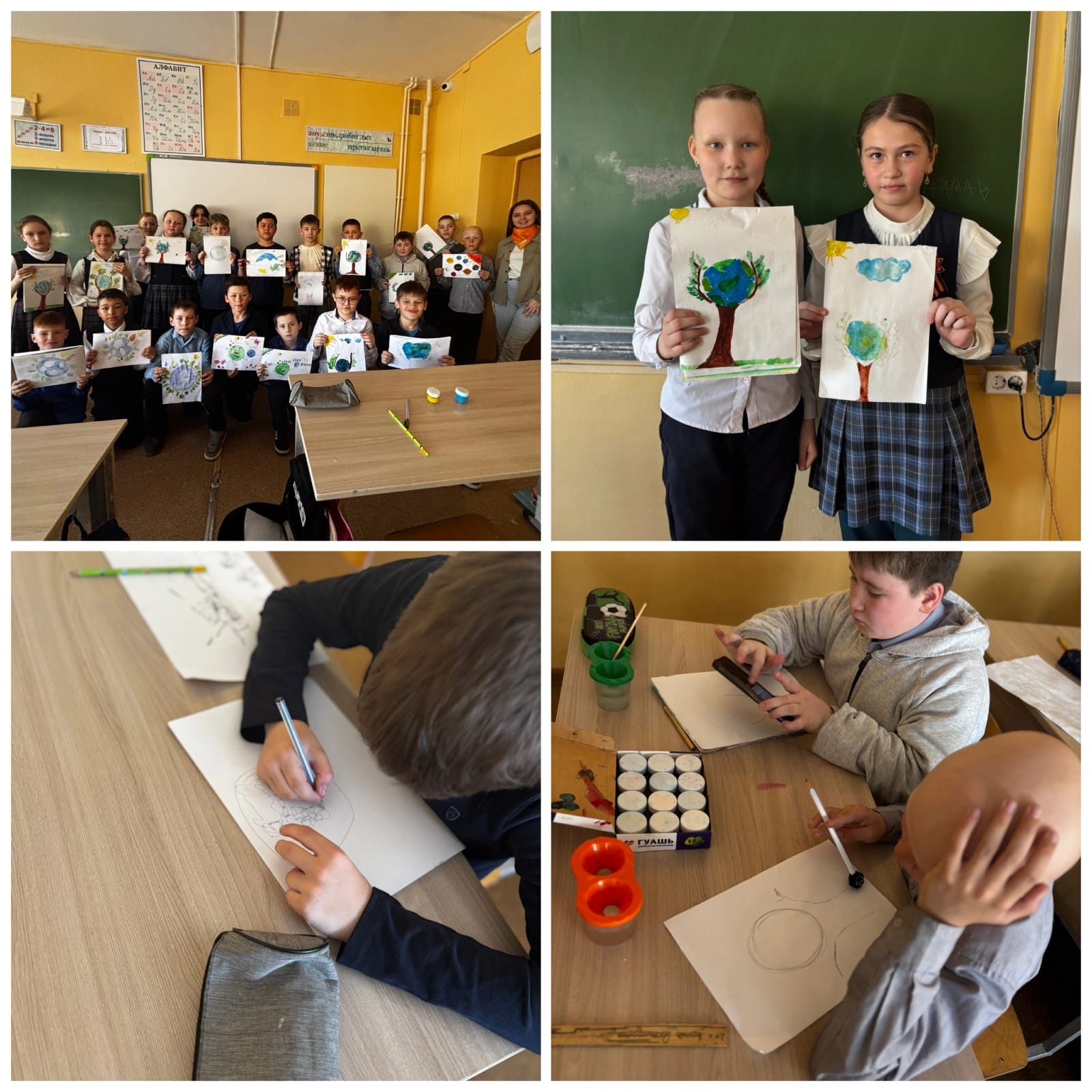 Учащиеся 4 «Б» класса рисовали рисунки на тему: "Как прекрасен мир цветной, разноцветный шар земной".