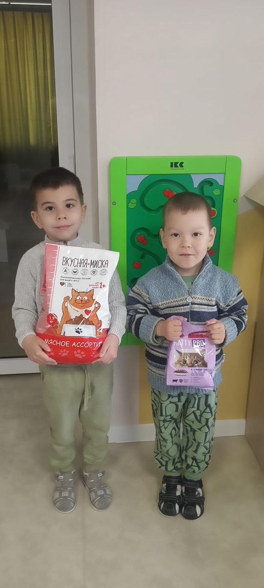 Воспитанники средней группы  МБДОУ "Ромашка г. Кукмор" Галимуллин Ильяс и Голов Кирил участвуют в акции «Помоги бездомным животным».  #эковесна2025