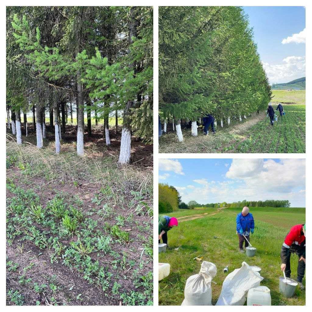 В рамках экологического месячника #Эковесна, сотрудники МБОУ"Байлянгарская средняя школа"побелили деревья, растущие вдоль дороги.  #Эковесна2025