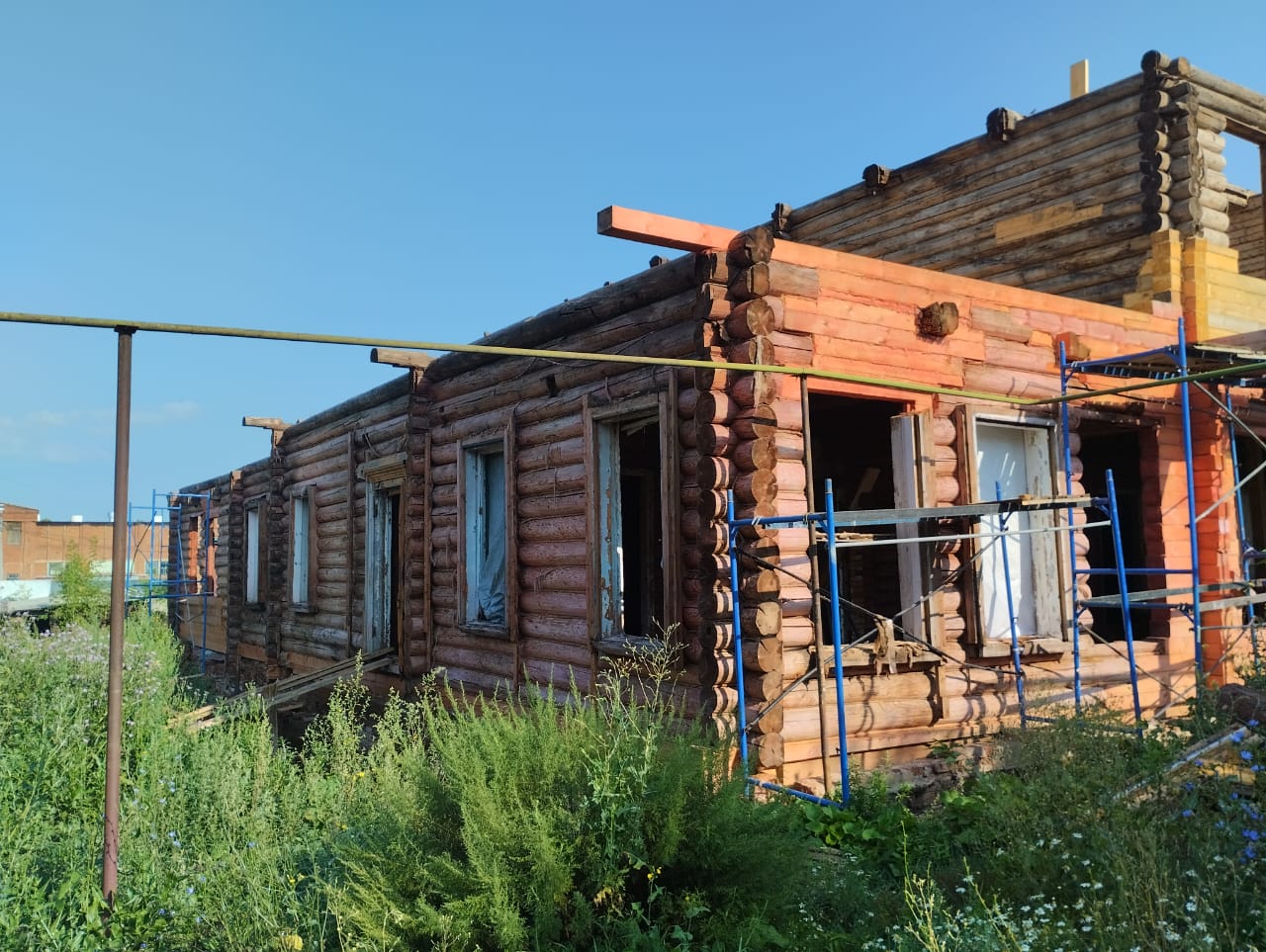 На сегодняшний день выполнены работы по усилению фундамента, идут работы по ремонту наружних стен, частично заменены венцы. Начали монтировать кровлю.