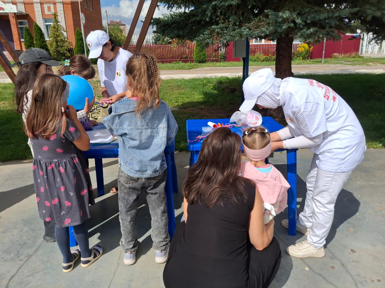 В рамках национального проекта «Семья» на Комсомольской площади прошла благотворительная акция «Помоги собраться в школу». Сотрудники центральной детской библиотеки им. С.В. Михалкова организовали яркий мастер-класс, где дети могли проявить свою креативность, создавая фигуры из синельной проволоки, рисуя на шарах и раскрашивая свои работы.
