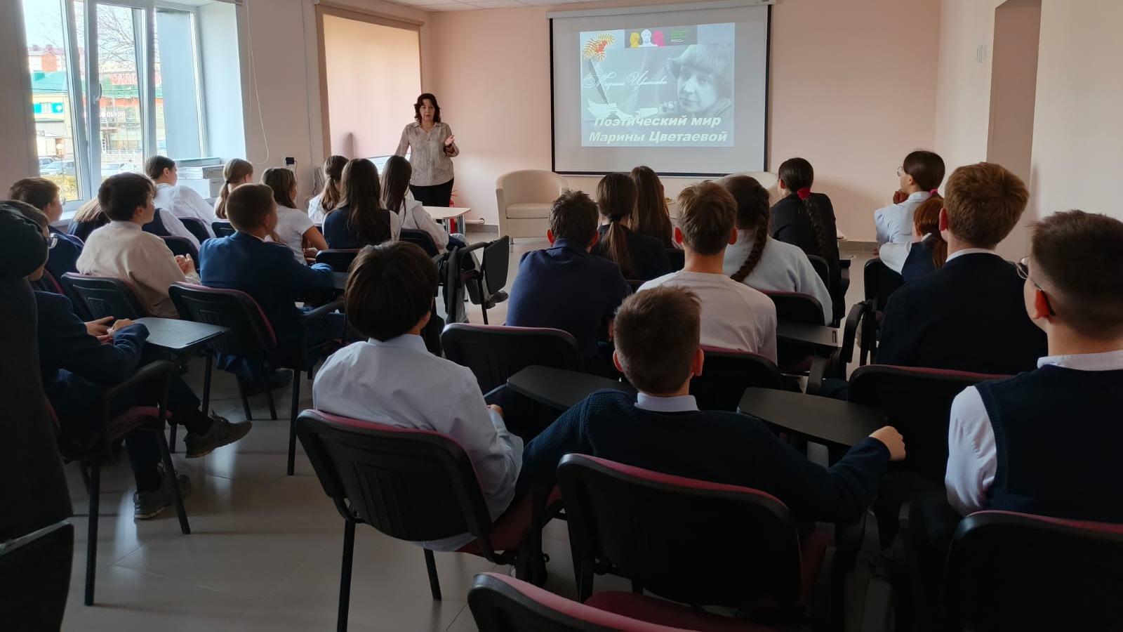 15 ноября, в рамках проекта «Пушкинская карта», библиотекарь Пахомова В.Г., для учащихся 8 «Б» класса средней школы №4, провела литературный вечер: «Поэтический мир Марины Цветаевой». Присутствующие познакомились с жизнью и творчеством поэтессы, со сборниками ее стихов, воспоминаниями о ней родных и друзей. В завершение мероприятия ребята приняли участие в литературной викторине.