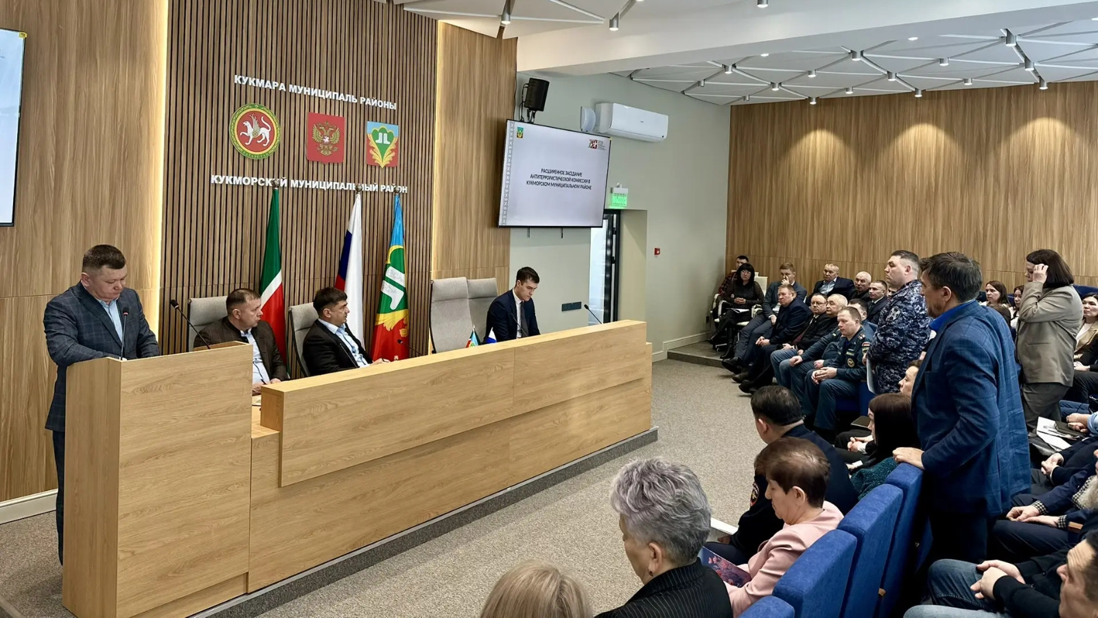 В работе заседания приняли участие заместитель председателя АТК, представитель Управления ФСБ России, заместитель прокурора Кукморского района, главы сельских поселений, директора образовательных организаций, руководители предприятий, представители духовенства, а также руководители частного охранного предприятия «Талисман».