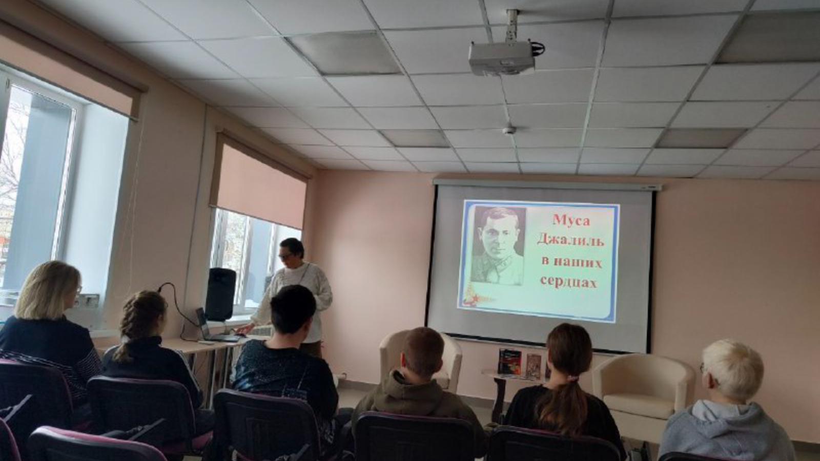12 февраля библиотекарь центральной библиотеки Загидуллина Гульнара Фаритовна для ребят, проходящих реабилитацию в центре «Милосердие», провела урок мужества: «Муса Джалиль –подвиг во имя Родины», посвященный 120-летию со дня рождения великого татарского поэта Мусы Джалиля. В ходе мероприятия слушатели узнали об интересных фактах из жизни поэта, его непростых детских и юношеских годах, литературной деятельности, о том, как он воевал, попал в плен, и о обессмертившей его имя автобиографичной книге стихов «Моабитская тетрадь». В конце мероприятия библиотекарь провела обзор книжной выставки: «Муса Джалиль. Мужество останется в веках…».