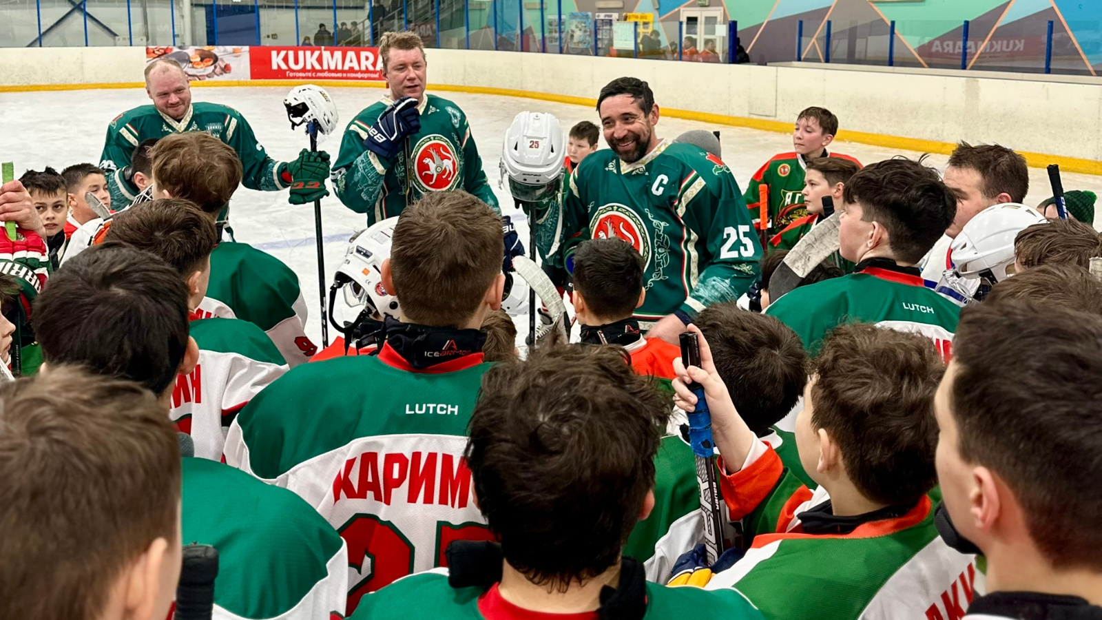 После автограф-сессии легенды хоккея — Данис Зарипов, Алексей Чупин, Артём Лукоянов, Михаил Глухов, Василий Токранов и Кирилл Голубев — провели мастер-класс для юных хоккеистов нашего района.