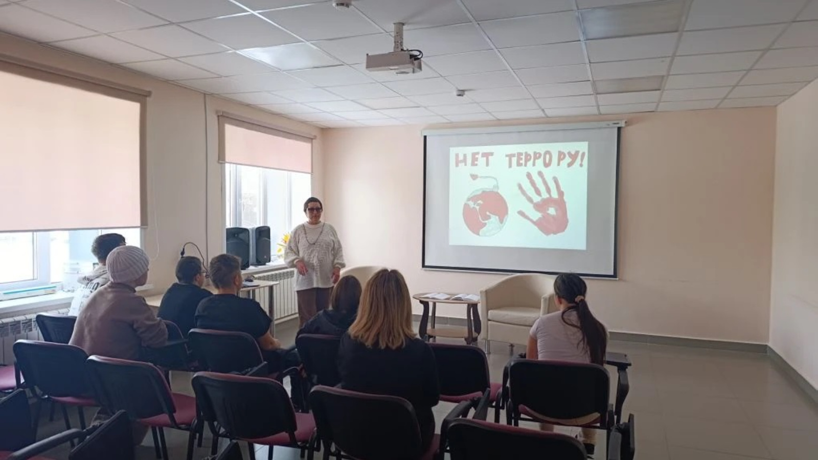 12 марта библиотекарь читального зала Загидуллина Г.Ф., для ребят реабилитационного центра «Милосердие», провела информационный час: «Терроризм – угроза жизни». В ходе информационного часа библиотекарь рассказала о том, что такое терроризм, какие формы он может принимать и какими мотивами руководствуются люди, совершающие теракты. Были приведены примеры известных террористических актов, чтобы наглядно продемонстрировать масштабы угрозы.