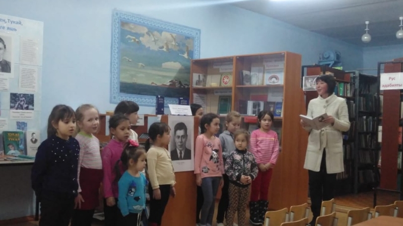 Әсән-Елга авылы китапханәчесе 1-3 сыйныф укучылары белән шагыйрь Фатих Кәримнең “Гармунчы аю белән җырчы маймыл” дип исемләнгән шигъри әкият укуны оештырды. Аның сүзләренә язылган “Яз җитә” җырын җырлап, шагыйрьнең “Ант”, “Ватаным өчен” шигырьләрен тыңладылар, Бөек Ватан сугышында зур батырлыклар эшләгән патриот шагыйрь булуы турында да мәгълүмат алдылар.