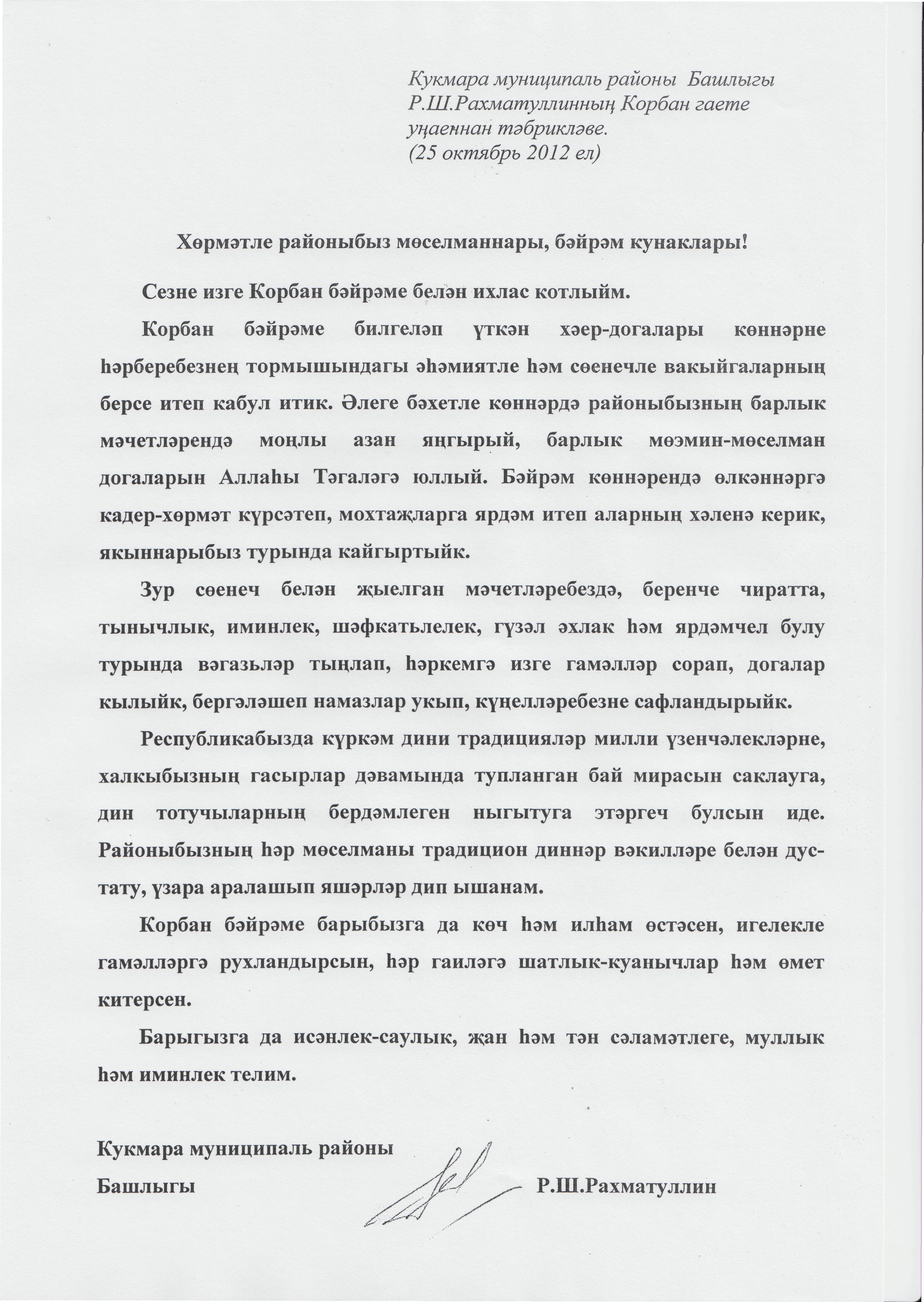 ХӨРМӘЛЕ РАЙОНЫБЫЗ МӨСЕЛМАННАРЫ, БӘЙРӘМ КУНАКЛАРЫ!